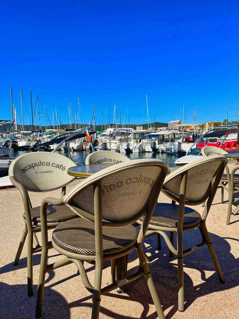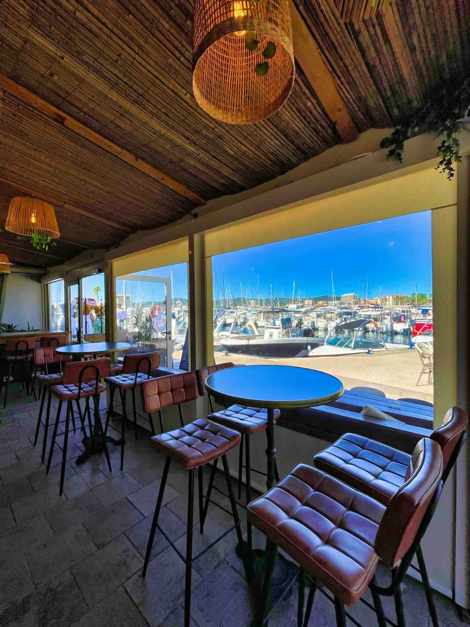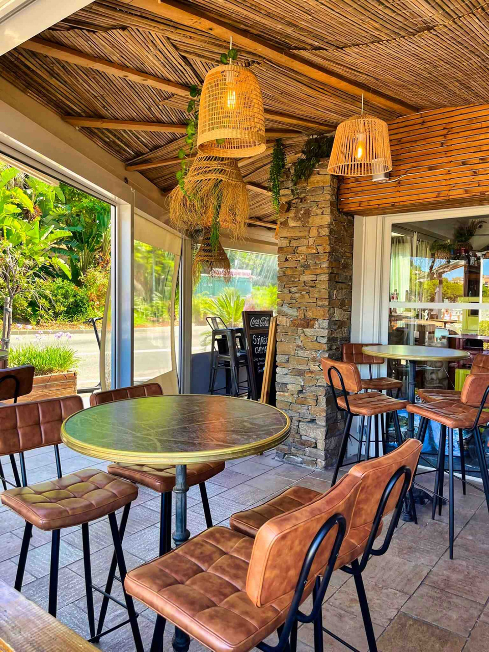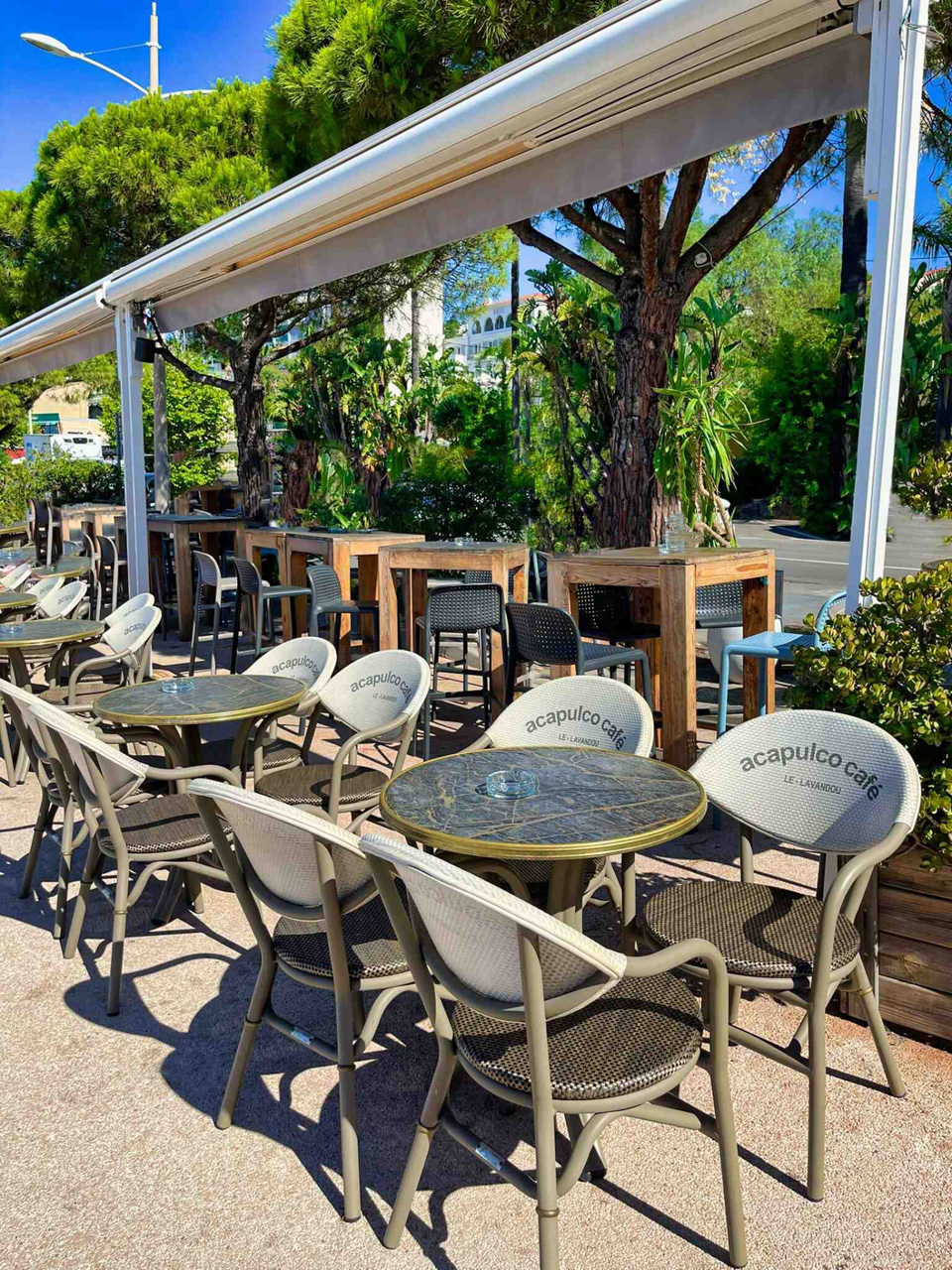 MOBILIER COULOMB a accompagné ce café et restaurant l'Acapulco café, situé au Lavandou dans l'aménagement de ses espaces intérieurs et extérieurs.