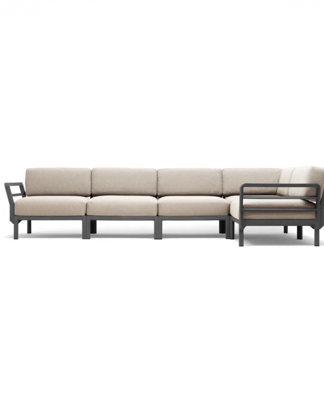 Le canapé Maximo 005 pour professionnels CHR est conçu avec une structure en polypropylène et une assise personnalisable rembourrée.