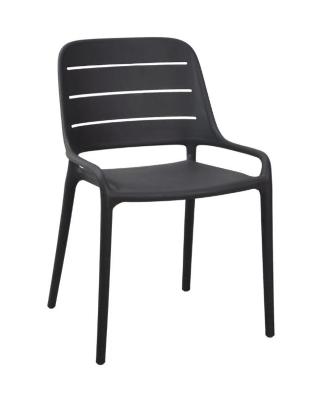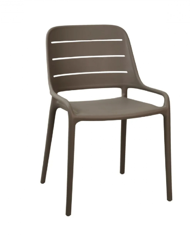 La chaise Foggia pour professionnels CHR est conçue avec une structure en plastique et une assise en plastique.