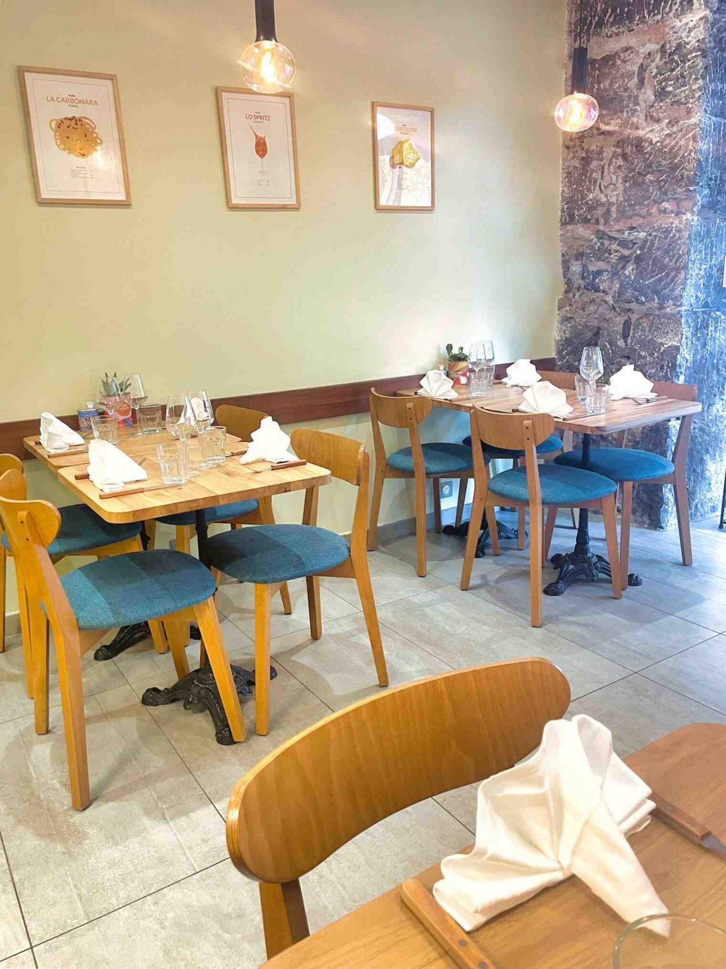 Chaises, tables, fauteuils et éléments personnalisés ont été pensés pour s'intégrer harmonieusement à l'identité du lieu, tout en garantissant une utilisation intensive adaptée aux professionnels.