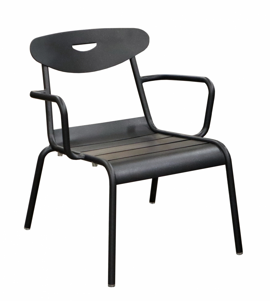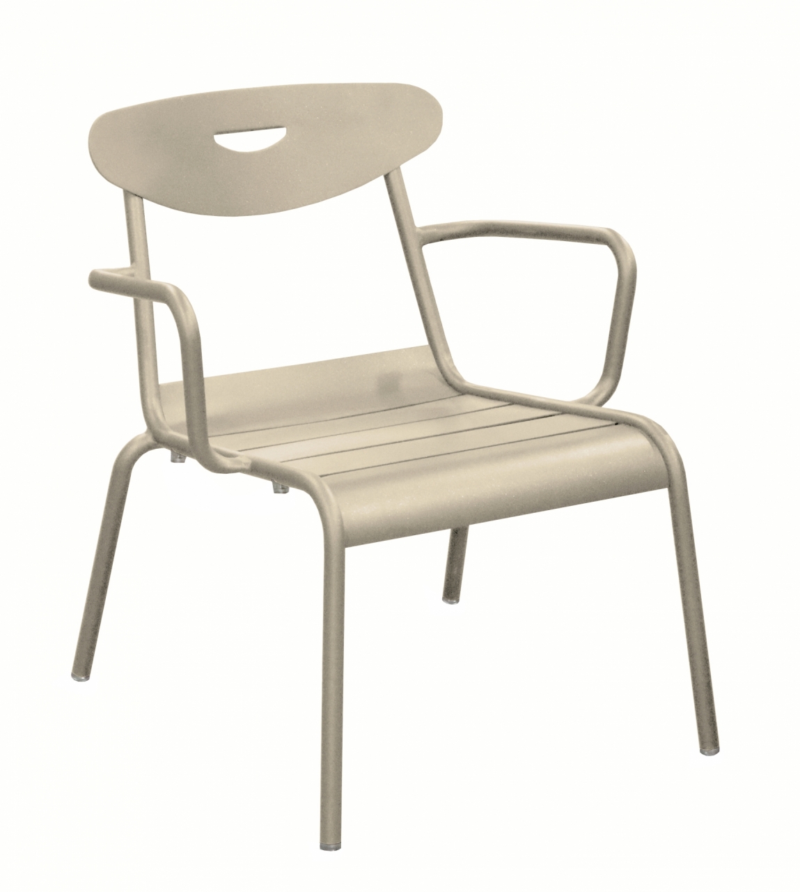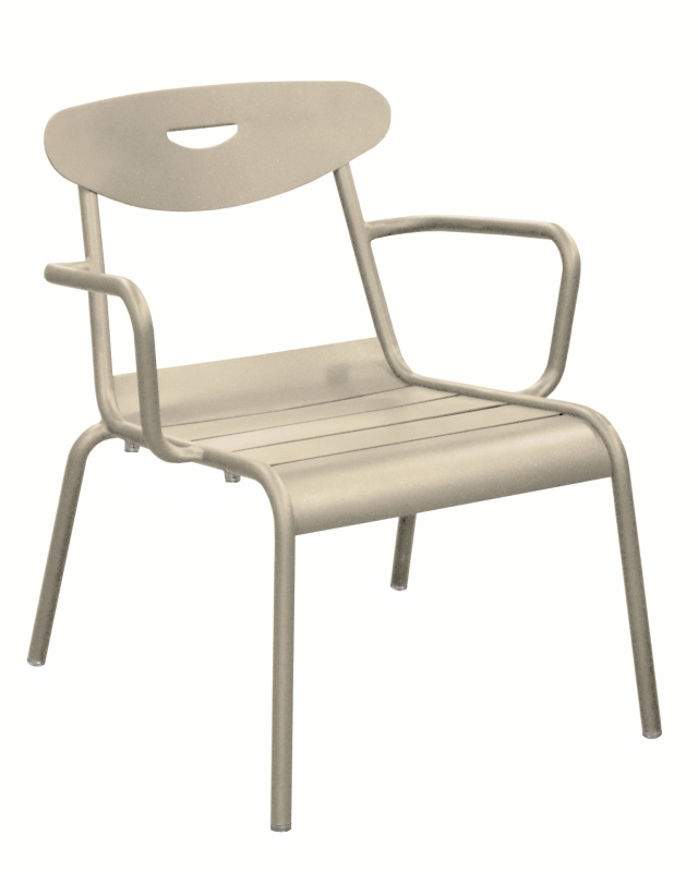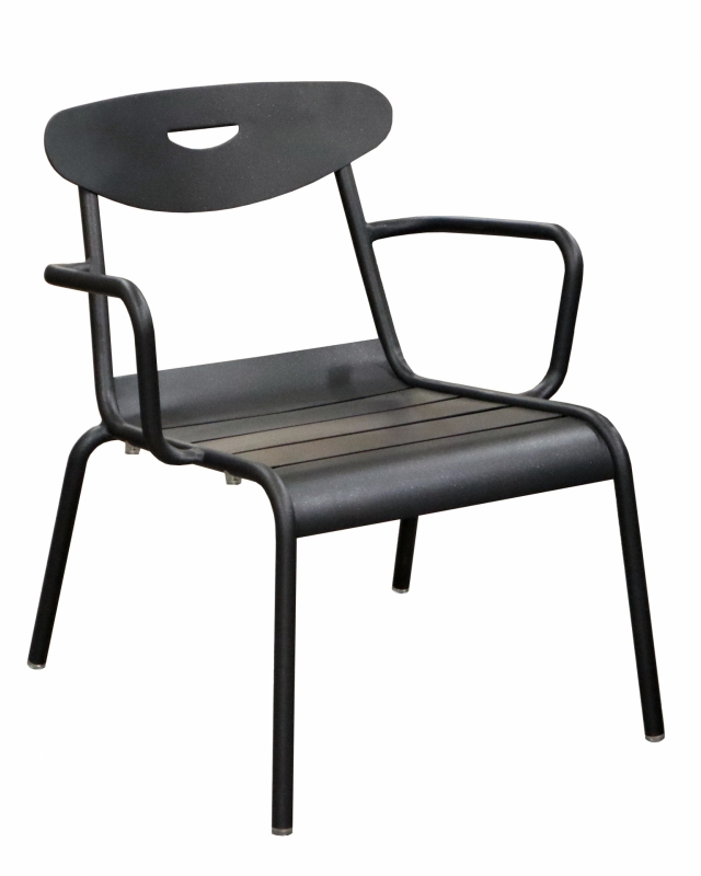 Le fauteuil lounge Smiley pour professionnels CHR est conçue avec une structure en aluminium et une assise à lattes.