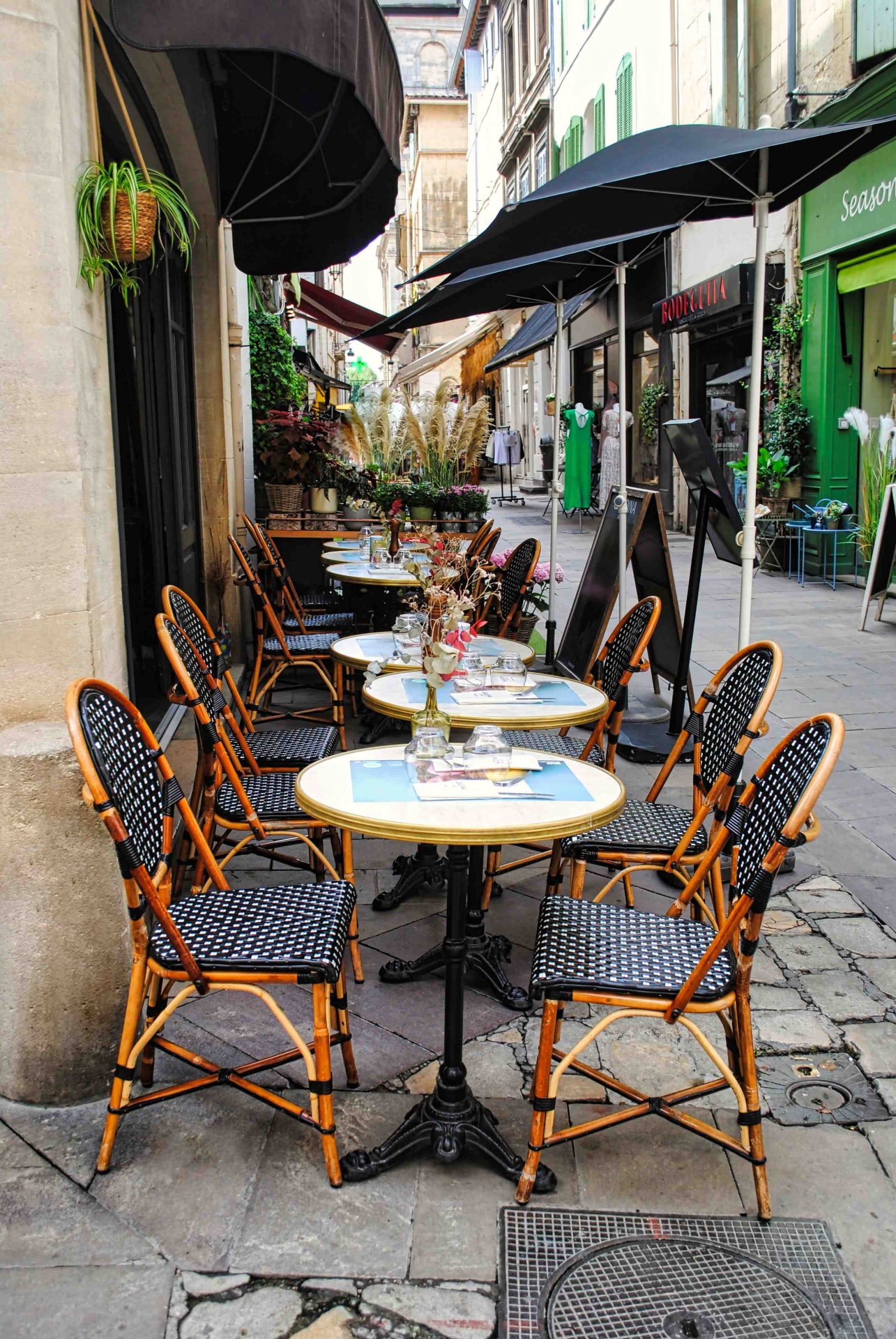 MOBILIER COULOMB a accompagné ce restaurant la Gaudina, situé à Arles dans l'aménagement de ses espaces intérieurs et extérieurs.