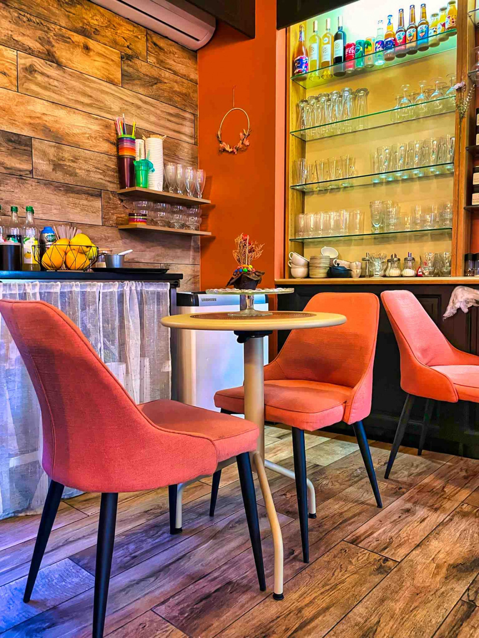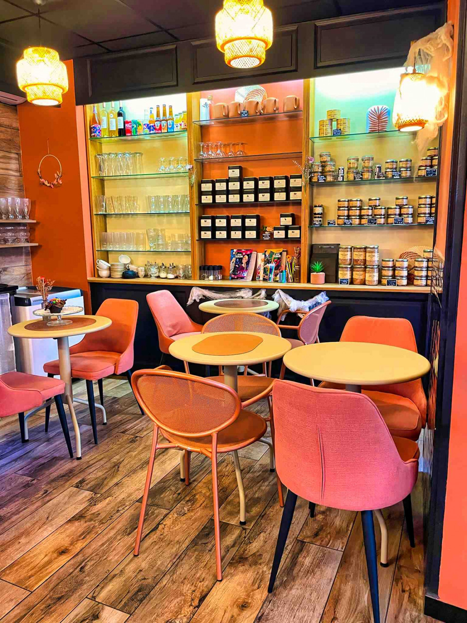 Chaises, tables, fauteuils et éléments personnalisés ont été pensés pour s'intégrer harmonieusement à l'identité du lieu, tout en garantissant une utilisation intensive adaptée aux professionnels.